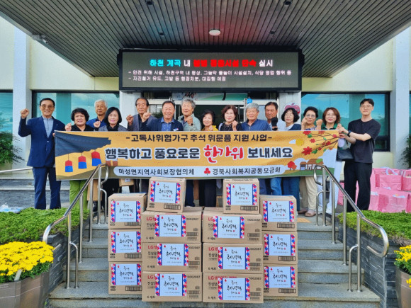 이종호 마성면지역사회보장협의체 위원장은 "추석을 맞아 따뜻한 마음이 어려운 이웃들에게 잘 전달되어 풍성한 한가위를 보내시길 바란다”며 "앞으로도 어려운 이웃과 늘 소통하는 협의체가 되도록 노력하겠다”고 말했다.