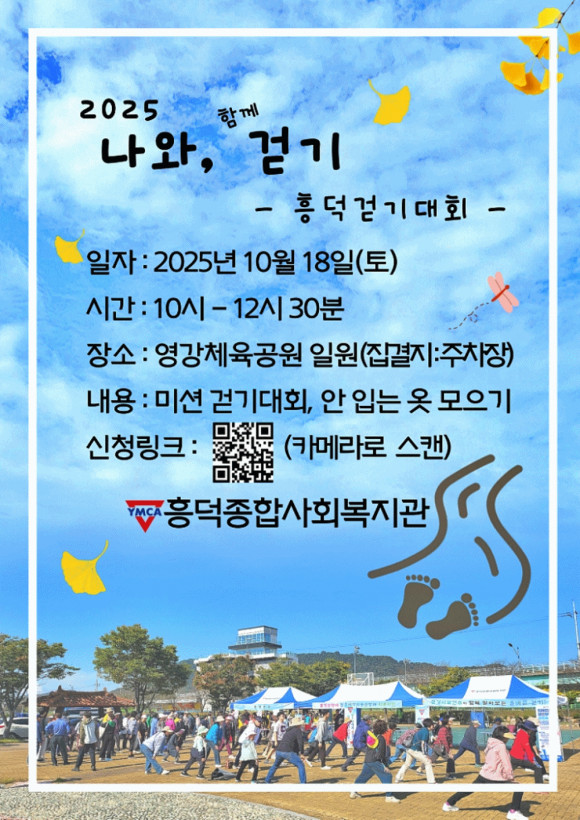 |  | | | ⓒ 문경시민신문 | | 흥덕종합사회복지관(관장 김병윤)은 오는 10월 18일, 영강체육공원에서 흥덕걷기대회 ‘나와, 걷기’를 개최한다.