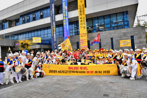 |  | | | ⓒ 문경시민신문 | | 퍼레이드가 끝난 뒤 문경문화원 앞마당에서는 ‘2031 세계군인체육대회 문경 유치 기원 한마당’이 열렸다. 농악대의 대동 한마당, 구호 제창 등을 통해 시민들이 하나 되어 대회의 성공적 유치를 기원하는 뜻깊은 자리가 마련됐다