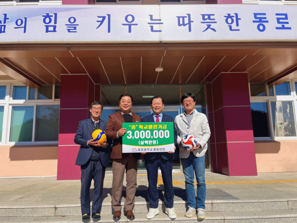 |  | | | ⓒ 문경시민신문 | | 동로중학교는 28일, 동로중학교 총동창회 송원호 회장(10회 졸업)으로부터 후배들을 위한 학교발전기금 300만 원을 전달받았다고 밝혔다.