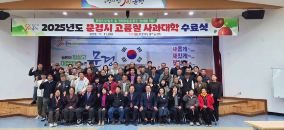 |  | | | ⓒ 문경시민신문 | | 문경시농업기술센터(소장 김미자)는 11월 11일 농업기술센터 대강당에서 2025년도 문경시 고품질 사과대학 수료식을 열고, 전체 교육 시간의 80% 이상을 출석한 교육생 123명 중 87명이 수료의 영예를 안았다.