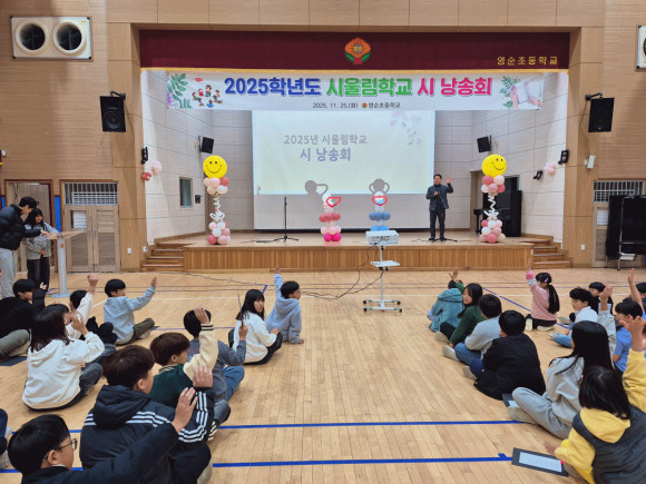 |  | | | ⓒ 문경시민신문 | | 영순초등학교(교장 최인규) 1~6학년 학생들은 2025년 11월 25일(화) ‘2025 영순 시울림학교 시낭송회’를 실시하였다. 이번 시낭송회를 통해 학생들은 시적 감수성을 기르고, 감정과 생각을 깊이 있게 표현하는 기회를 가졌다.