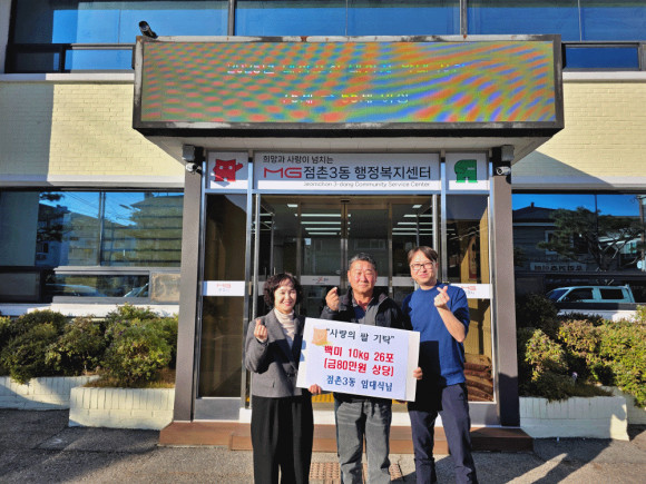 |  | | | ⓒ 문경시민신문 | | 점촌3동 주민 임대식 씨는 지난 11월 28일 점촌3동행정복지센터를 방문하여 경로당 어르신들께 전달해 달라며 쌀 10kg 26포(80만 원 상당)를 기탁했다.
