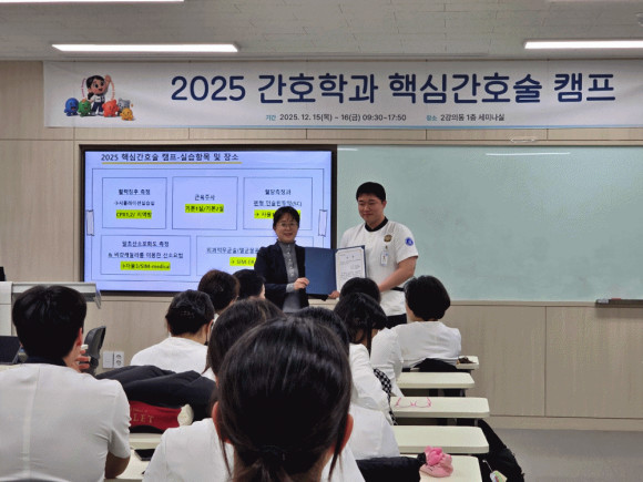 윤영주 학과장은 “핵심간호술 캠프는 학생들이 임상실습 전 반드시 익혀야 할 술기를 충분히 연습함으로써 실습에 대한 부담과 불안을 완화하는 데 큰 도움이 된다”며 “앞으로도 학생들의 임상 역량 강화를 위해 실습 중심 교육 프로그램을 지속적으로 확대해 나가겠다”고 말했다.