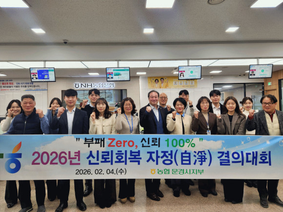 |  | | | ⓒ 문경시민신문 | | 농협 문경시지부는 2월 4일 전 직원이 참석한 가운데 신뢰회복 자정(自淨) 결의대회를 개최하고, 청렴한 조직문화 정착과 신뢰 회복을 위한 실천 의지를 다졌다.