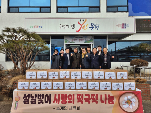 |  | | | ⓒ 문경시민신문 | | 문경시 호계면 체육회(회장 권순용)는 지난 2월 4일 설을맞아 호계면의 어르신들을 위하여「설날맞이 사랑의 떡국떡 나눔」행사를 실시했다.