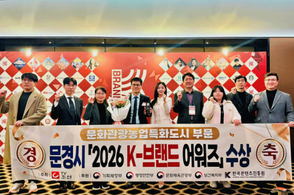 |  | | | ⓒ 문경시민신문 | | 문경시는 '2026 K-브랜드 어워즈'에서‘대한민국을 선도하는 명품도시’로서 공로를 인정받아 '문화관광농업특화도시' 부문 수상 지자체에 최종 선정되었다. K-브랜드 어워즈는 TV조선이 주최하고 재정경제부, 행정안전부, 문화체육관광부 등 정부 기관이 후원하는 시상식으로, 창의적이고 선진적인 부문별 브랜드의 산업·문화경쟁력을 평가해 최종 수상 대상을 결정한다.
