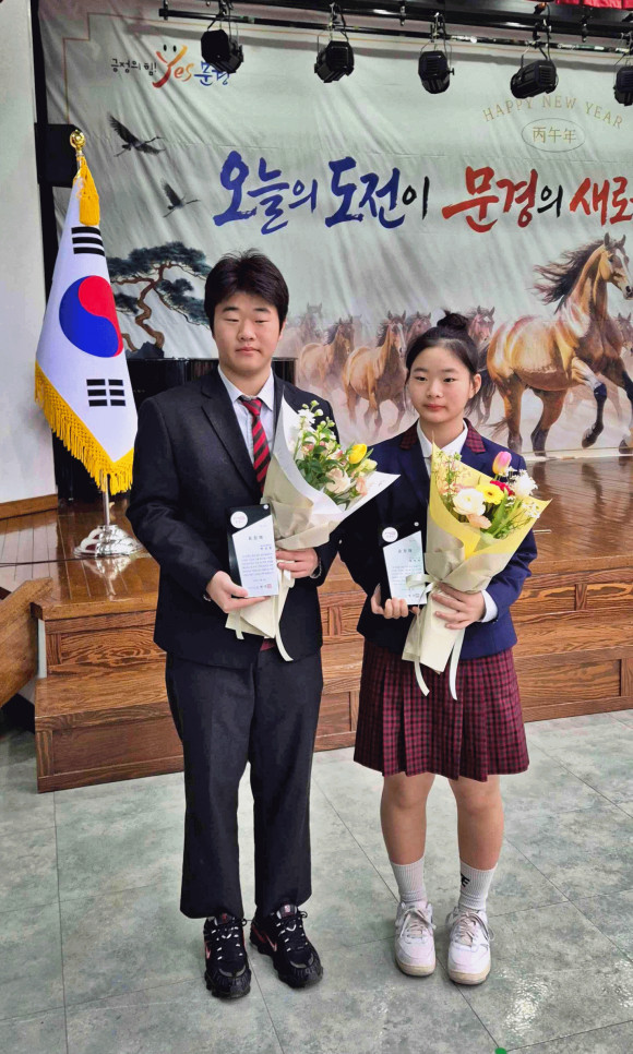 표창의 주인공은 박성준 군(문창고 1학년)과 박정하 양(문경여중 2학년)이다.