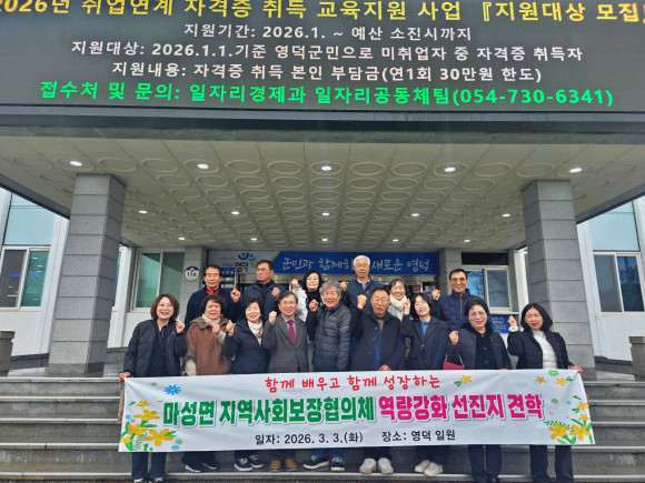 이날 마성면지역사회보장협의체 위원들은 영덕군지역사회보장협의체의 조직 구성과 운영 방식, 민·관 협력체계 구축 사례, 지역특화 복지사업 추진 성과 등에 대한 설명을 듣고 질의응답 시간을 가졌다. 특히 지역 내 복지 사각지대 발굴 체계와 주민 참여를 기반으로 한 맞춤형 지원사업 사례에 큰 관심을 보였다.