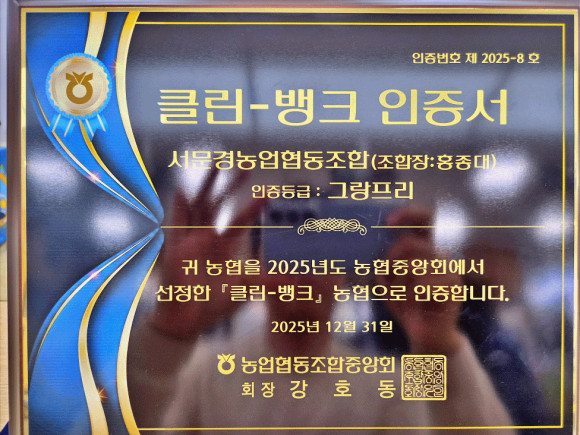 클린뱅크 그랑프리 등급 인증은 농협중앙회가 인증기준(연체비율, 고정이하비율, 대손충당금 및 손실흡수율등)을 충족한 농축협 중 5년 연속 클린뱅크 ‘금’등급을 달성한 농축협에 시상하는 상이다.