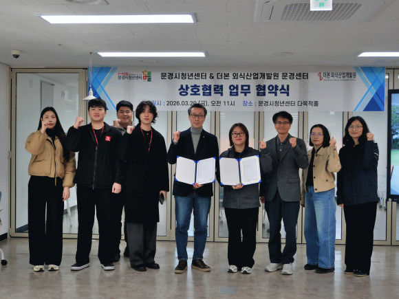 |  | | | ⓒ 문경시민신문 | | 문경시청년센터는 2026년 3월 20일(금) 오전 11시, 더본 외식산업개발원 문경센터와 지역 청년의 외식 산업 활성화 및 프로그램 공동 개발 운영 등을 위한 업무협약(MOU)을 체결했다고 밝혔다.