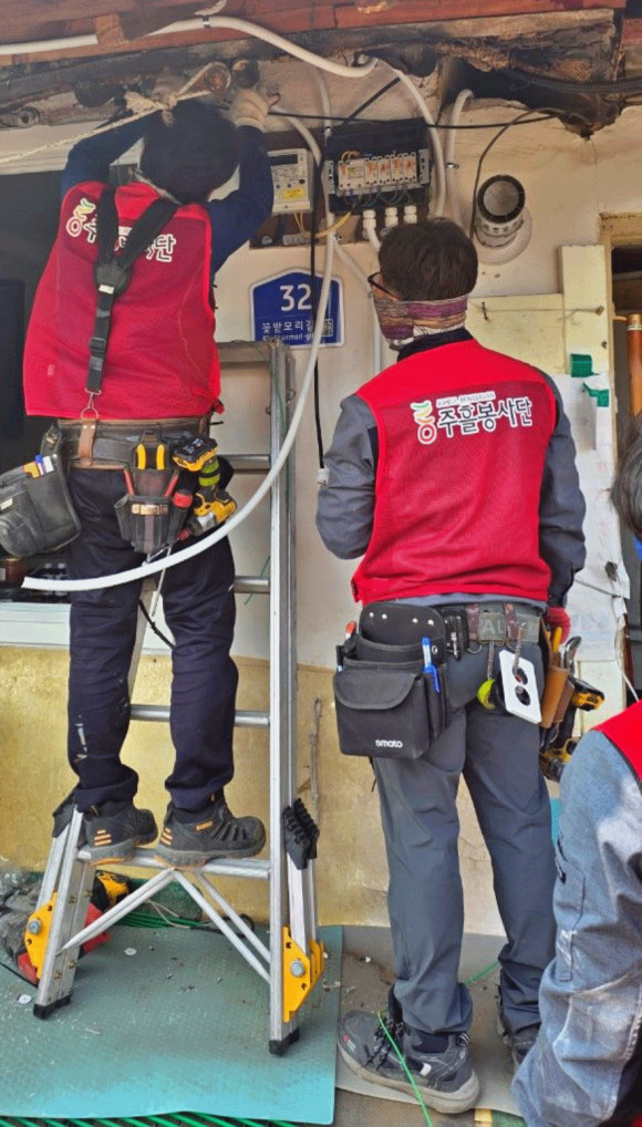 이날 봉사단은 경제적 어려움을 겪고 있는 2가구를 방문해 노후 전선·콘센츠 교체, 조명기구 설치 등 전기 안전 개선 작업을 진행하였으며, 특히 화재 위험이 높은 노후 배선을 집중적으로 정비하여 생활 안전을 크게 향상 시켰다.