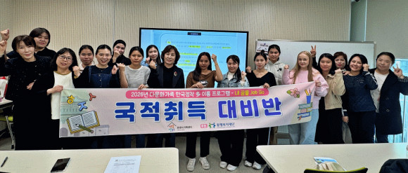 |  | | | ⓒ 문경시민신문 | | 문경시가족센터(센터장 박소희)는 다문화가족의 안정적인 한국 사회 정착을 지원하기 위해 동행복지재단 공모사업인 ‘2026년 다문화가족 한국정착 多이룸 프로그램 - 내 꿈을 Job Go! 국적취득 대비반’을 운영한다.