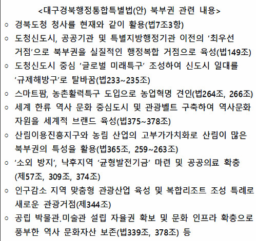 대구경북행정통합법안에 담긴 경북 북부권 발전방안