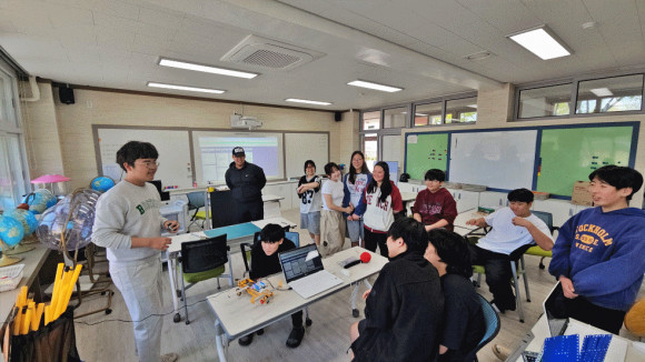 이번 과학의 날 행사는 창의융합실에서 진행된 이번 행사는 학생들이 문학 작품 속 주인공이 처한 일상 생활의 문제를 발견하고, 이를 과학상자와 코딩팩을 활용해 직접 공학적 솔루션을 제작하는 과정으로 구성되었다. 학생들은 단순히 기계를 조립하는 것에서 나아가, 초음파 센서, 서보 모터 등 코딩팩의 핵심 요소를 활용하여 주인공의 문제를 해결할 ‘지능형 모방 기술 장치’를 설계했다. 주요 프로그램으로는 ▲문학 작품 속 문제 정의 및 공감하기 ▲과학상자 기계 요소(기어, 링크 등) 설계 ▲코딩을 통한 지능형 제어 알고리즘 구현 ▲최종 솔루션 시연 및 성찰 등이 차례로 이어졌다.