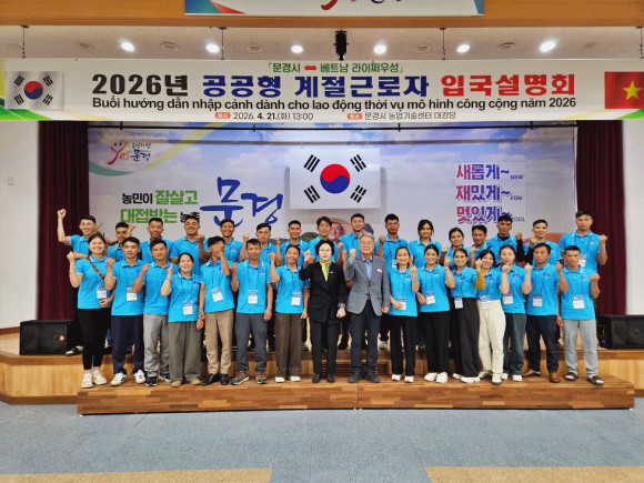 |  | | | ⓒ 문경시민신문 | | 문경시는 4월 21일 농업기술센터 대강당에서 2026년 공공형 계절근로자 1차 입국자 30명을 대상으로 입국설명회를 개최하고 본격적인 농가 인력 지원에 나섰다.
