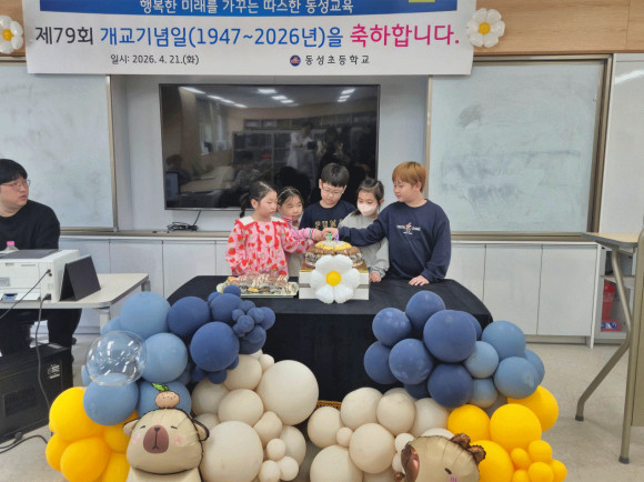 동성초등학교는 1947년 4월 21일 개교하여 2026년까지 79주년을 맞이하였다. 제75회 졸업생까지 총 6,249명을 배출하였으며, 학생들이 이번 개교기념일 행사를 통해 역사와 전통을 자랑하는 학교를 이해하고 사랑하는 마음을 함양하고자 실시하였다.