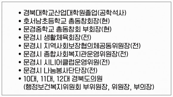 |  | | | ⓒ 문경시민신문 | | 경북도의원 국민의힘 제1선거구(점촌2‧4‧5동‧ 문경‧마성‧농암) 박영서예비후보가 제1선거구 출마를 위한 공약 발표를 하였다.